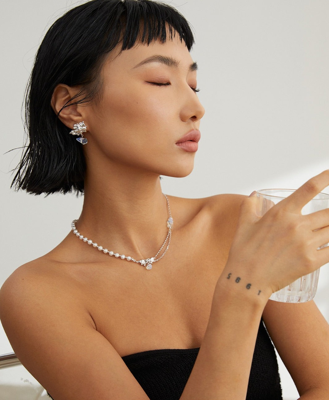 STERLING SILVER PEARL OPAL AB STYLE CHAIN NECKLACE