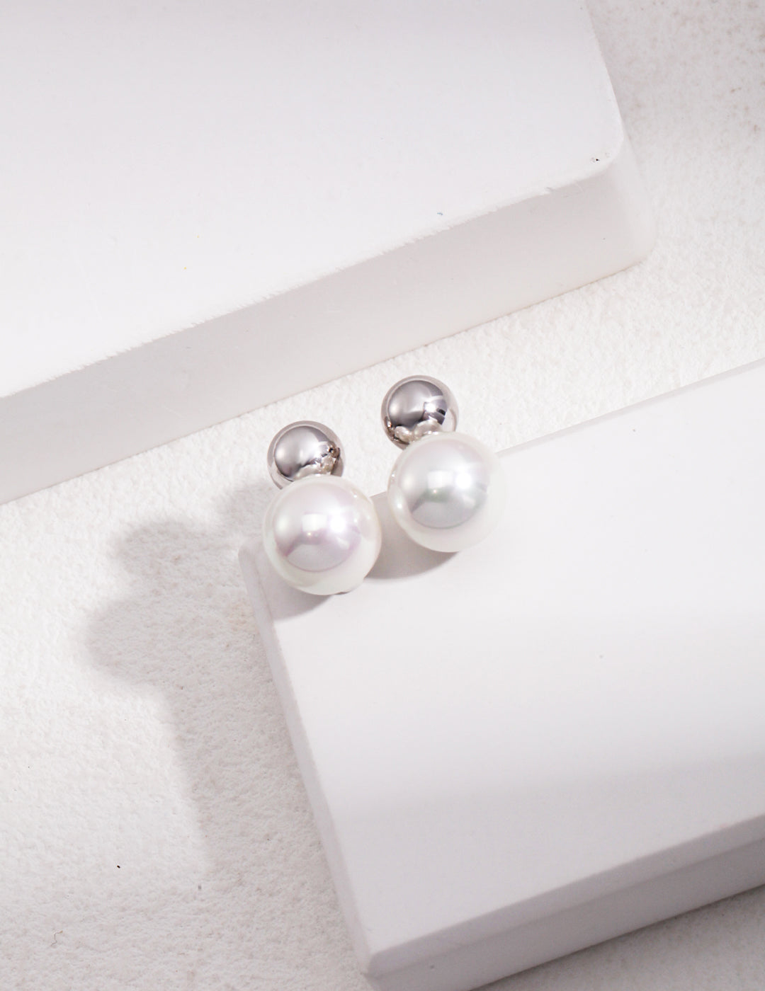 STERLING SILVER SHELL DUO-BEAD STUD EARRINGS